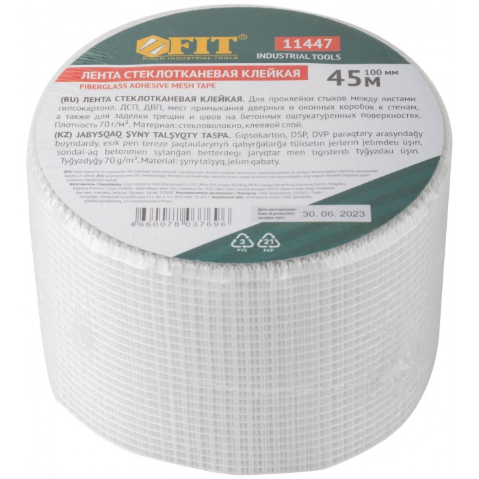 Клейкая. Для проклейки стыков между листами гипсокартоная, ДСП, ДВП, мест примыкания дверных и оконных коробок к стенам, а также для заделки трещин и швов на бетонных оштукатуренных поверхностях. Плотность 70 г/м2. Материал: стекловолокно, клеевой слой.