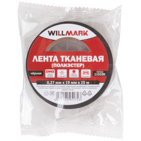Лента тканевая ( полиэстер ) WILLMARK 19 мм х 0,27 мм х 10 м ( черная ) (11052)
