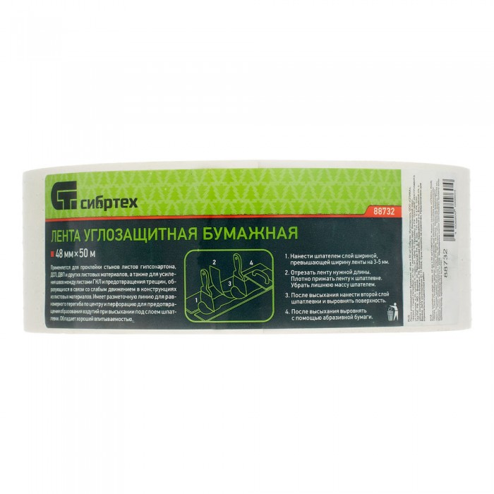Лента углозащитная бумажная, 48 мм х 50 м Сибртех (88732)