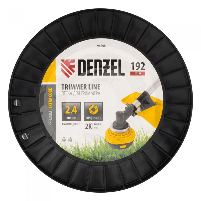 Леска для триммера двухкомпонентная круглая, 2,4мм х 192м, на DIN катушке EXTRA CORD Denzel (96808)