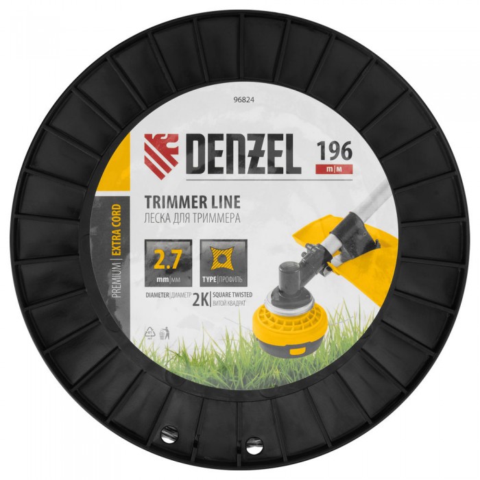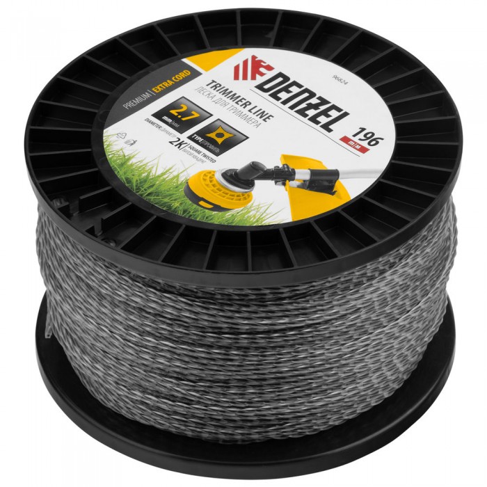 Леска для триммера двухкомпонентная витой квадрат, 2,7мм х 196м, на DIN катушке EXTRA CORD Denzel (96824)