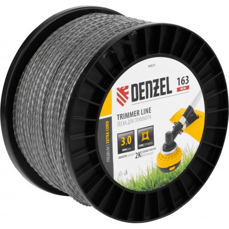 Леска для триммера двухкомпонентная витой квадрат, 3,0мм х 163м, на DIN катушке EXTRA CORD Denzel (96825)