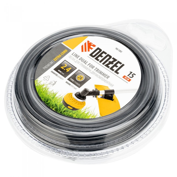 Леска двухкомпонентная для триммера, круглая, 2.4 мм х 15 м, EXTRA CORD Denzel (96180)