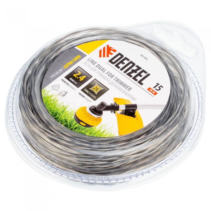 Леска двухкомпонентная для триммера квадратная витая, 2.4 мм х 15 м, EXTRA CORD Denzel (96185)