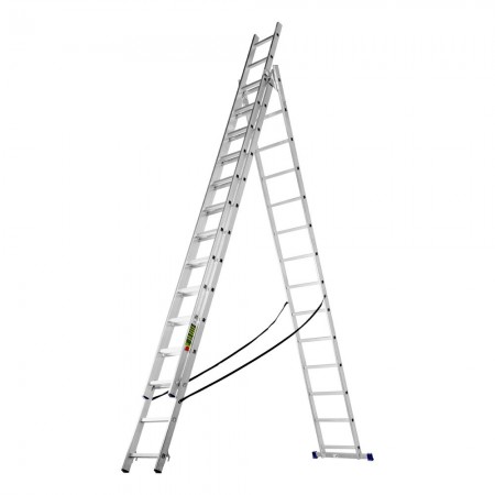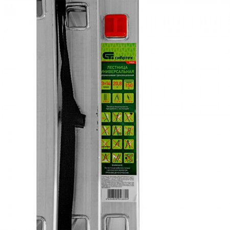 Лестница, 3 х 14 ступеней, алюминиевая, трехсекционная, Сибртех (97824)