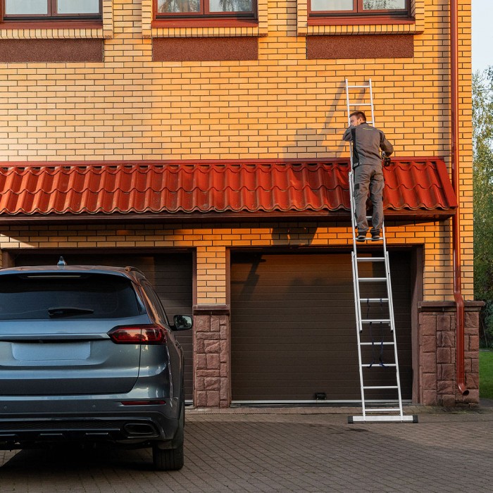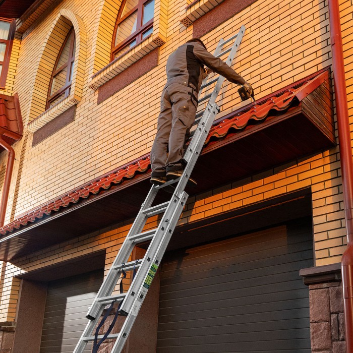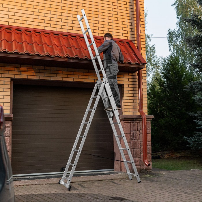 Лестница, 3 х 8 ступеней, алюминиевая, трехсекционная, Сибртех (97818)