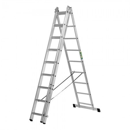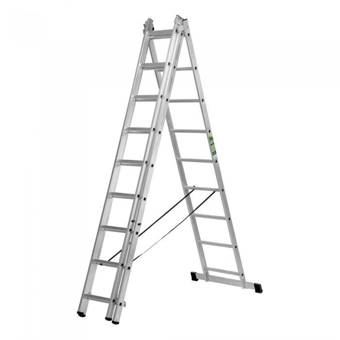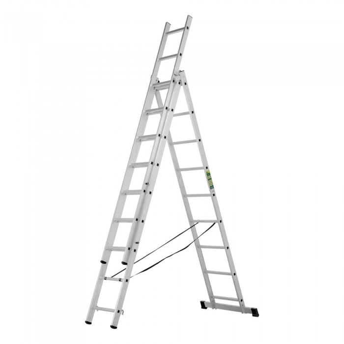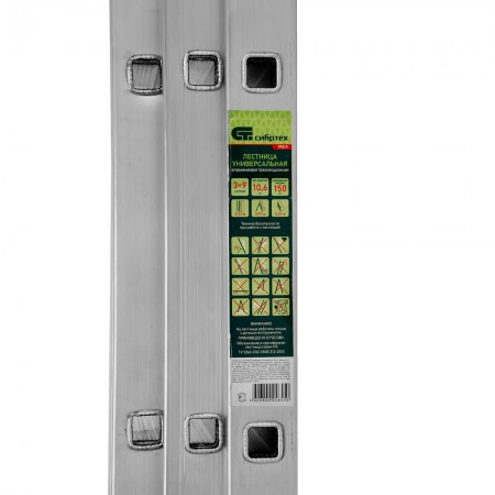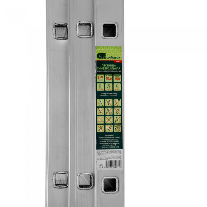 Лестница, 3 х 9 ступеней, алюминиевая, трехсекционная, Сибртех (97819)