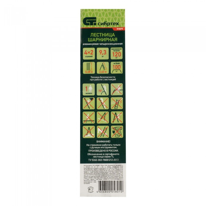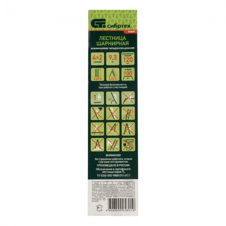 Лестница шарнирная алюминиевая, 4 х 2 ступени, Сибртех (97879)