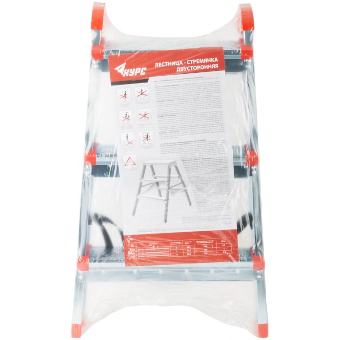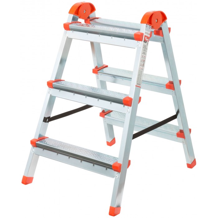 Лестница-стремянка стальная двусторонняя, 3 ступени, Н=67,5 см, вес 4,0 кг (65392)