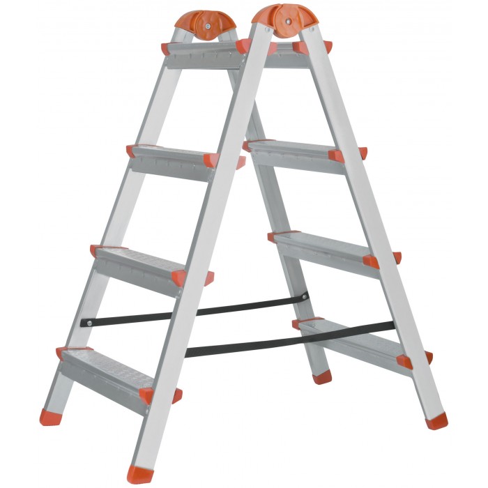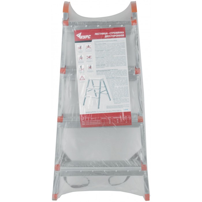 Лестница-стремянка стальная двусторонняя, 4 ступени, Н=88,5 см, вес 5,3 кг (65393)
