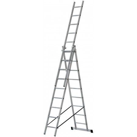 Лестница трехсекционная алюминиевая, 3 х 9 ступеней, H=257/426/591 см, вес 11,18 кг (65434)