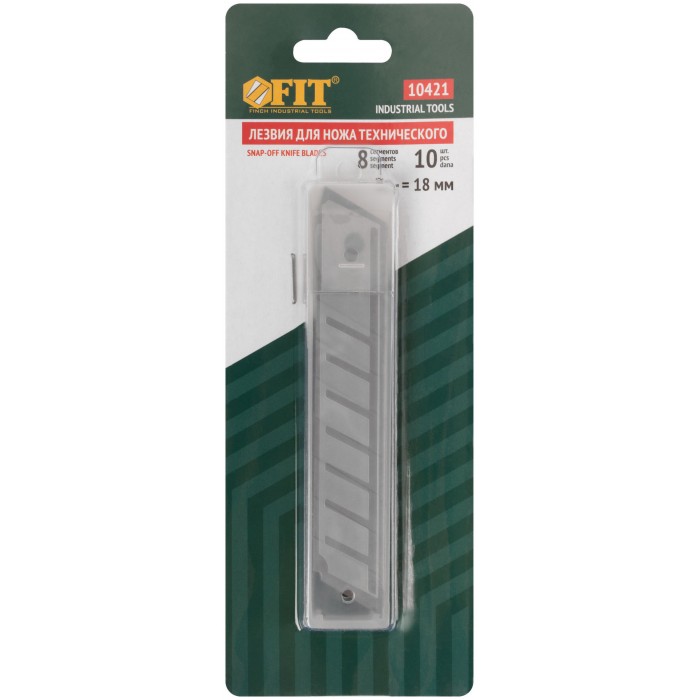 Лезвия для ножа технического 18 мм, 8 сегментов, сталь SK5 (10 шт.) (10421)