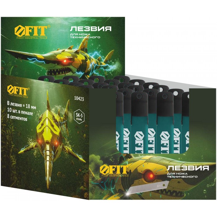 Лезвия для ножа технического 18 мм, 8 сегментов, сталь SK5 (10 шт.), шоу-бокс (10423)