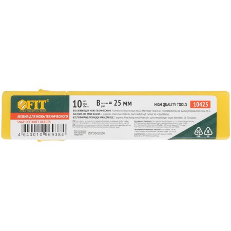 Лезвия для ножа технического 25 мм, 7 сегментов, сталь SK5 (10 шт.) (10425)
