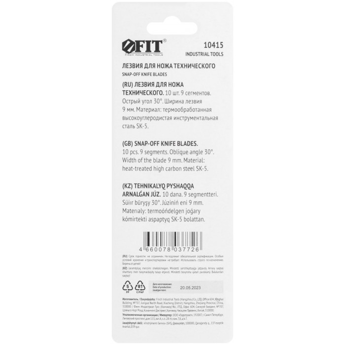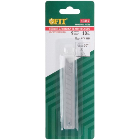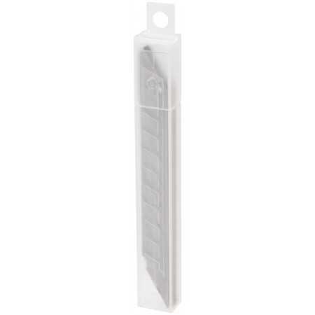 ''Отламывающиеся''. Острый угол 30°. 9 сегментов. Для ножей технических с лезвием 9 мм. Материал: сталь SK5. Упаковка: пластиковый пенал в блистере.