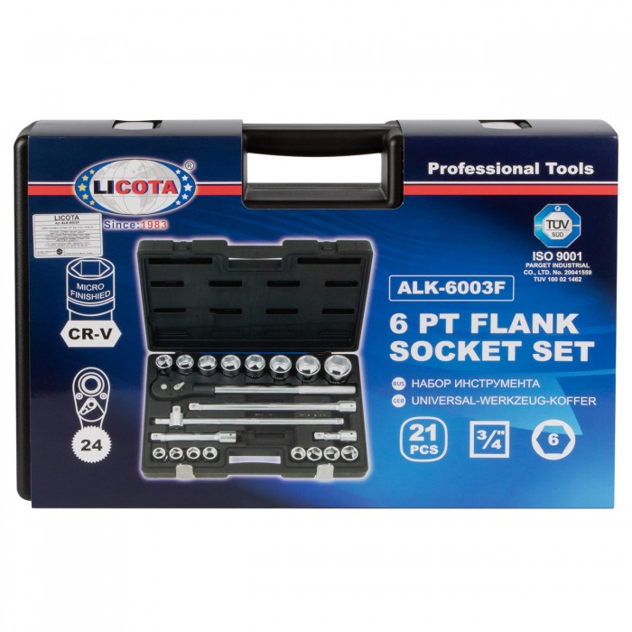 Набор торцевых головок Licota ALK-6003F из хром-ванадиевой стали предназначен для ручного монтажа/демонтажа резьбового крепежа. Набор из 21 предмета в пластиковом кейсе.