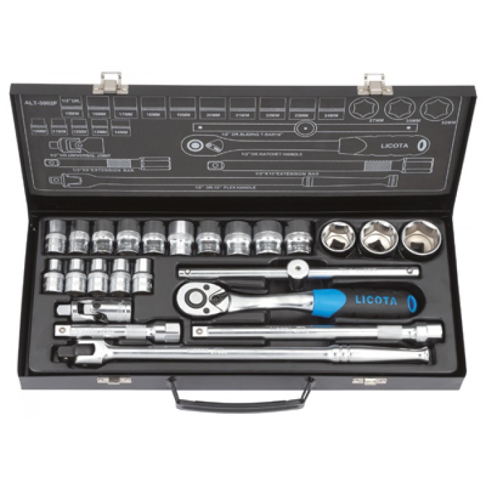 Набор торцевых головок 1/2" 24пр. 10 - 32 мм Licota ALT-5002F-RU позволяет производить слесарные, монтажные, демонтажные и ремонтные работы с крепежными соединениями. Трещотка с большим количеством зубьев и мелким шагом перещелкивания обеспечивает плотную фиксацию на профиле детали, что исключает срыв резьбы. Рукоятки инструментов комфортно лежат в руке. Рабочие части выполнены из высококачественной хромованадиевой стали. Набор предоставляется в прочном металлическом кейсе.