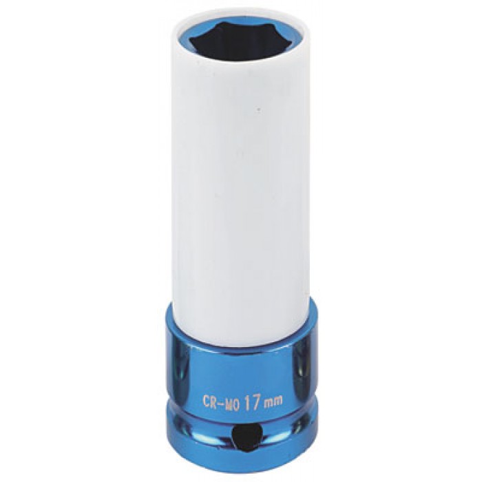 Головка снабжена защитным пластиковым чехлом, который предотвращает повреждение колесных дисков. Цветное покрытие позволяет быстро определить размер головки, не глядя на маркировку.