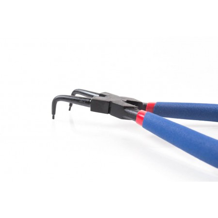 Съемник внутренних стопорных колец, загнутый Licota APT-38002C из хром-ванадиевой стали и ручками из эргономичного нескользящего полимера. Съемник работает на сжим. Длина инструмента - 240 мм.