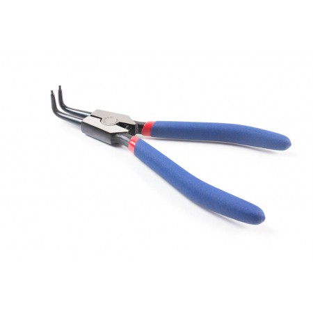 Съемник внешних стопорных колец, загнутый Licota APT-38004A из хром-ванадиевой стали и ручками из эргономичного нескользящего полимера. Съемник работает на разжатие. Длина инструмента - 140 мм.