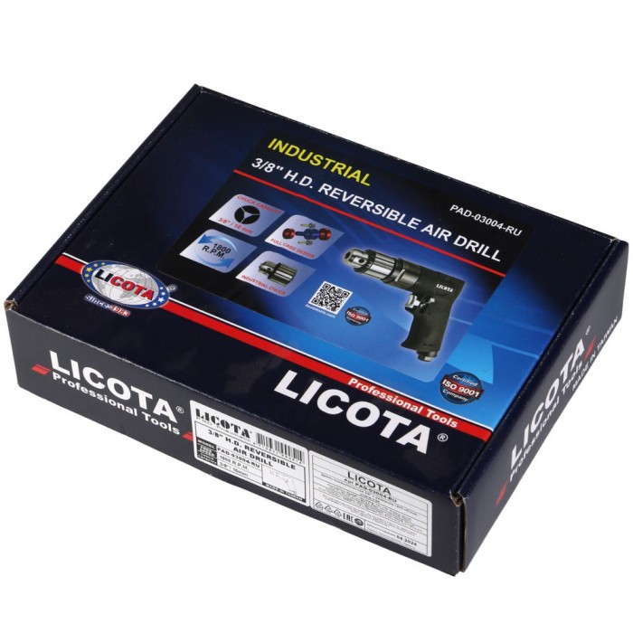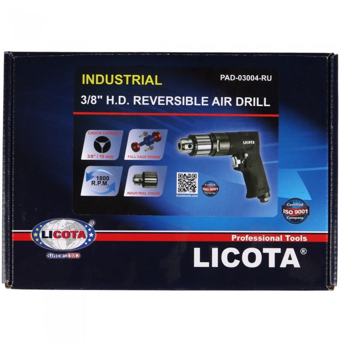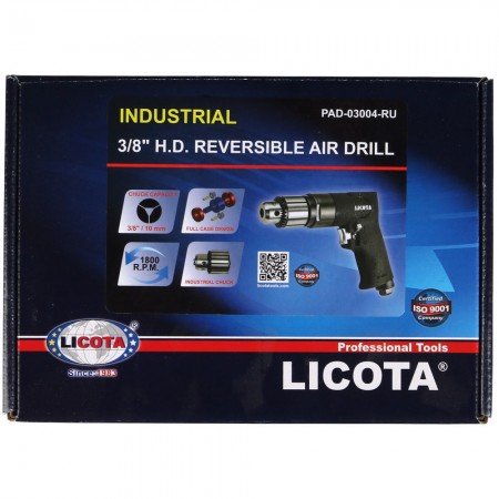 Дрель пневматическая 3/8" с реверсом 1800 об/мин, усиленная, Licota, PAD-03004-RU