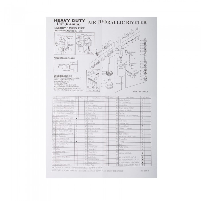 Заклепочный пистолет пневмогидравлический; 2,4-6,4 мм; ход 18 мм, 16600Н, Licota, PAV-00001