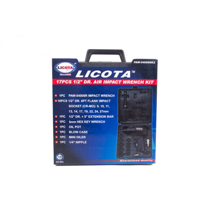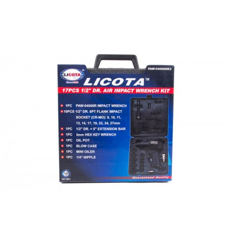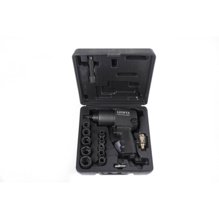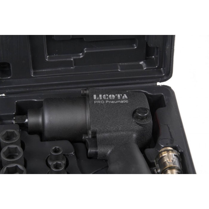 Гайковерт пневматический ударный 1/2" 563 Нм (57 кГм) с головками 9-27 мм и аксессуарами, в кейсе, Licota, PAW-04006RK2