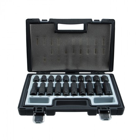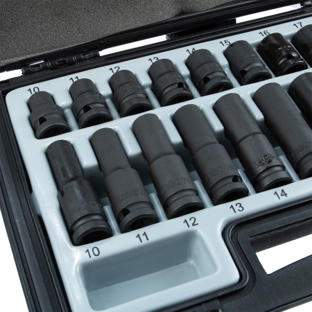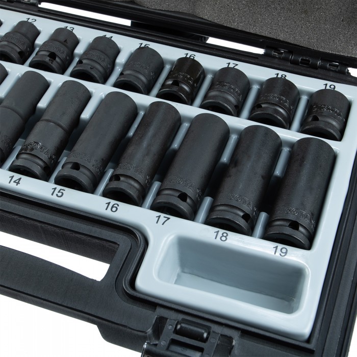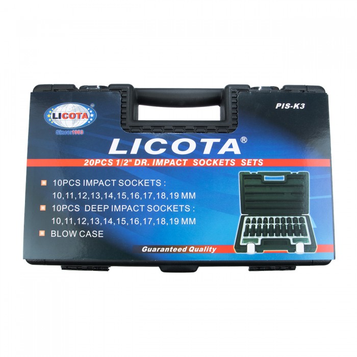 В набор головок Licota входят глубокие и стандартные торцевые ударные головки из хром-молибденовой стали. Комплект предназначен для для монтажа/демонтажа резьбового крепежа. Чаще всего используется при работе с ударным пневматическим инструментом.