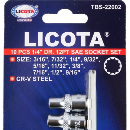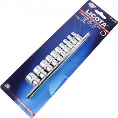 Набор торцевых головок 12-ти гранных 10 пр. на линейке, 3/16"-9/16" 1/4" Licota TBS-22002