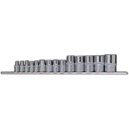 Набор торцевых головок Licota TBS-22003 из хром-ванадиевой стали предназначен для ручного монтажа/демонтажа резьбового крепежа. Набор из 10 предметов на металлическом держателе-линейке.
