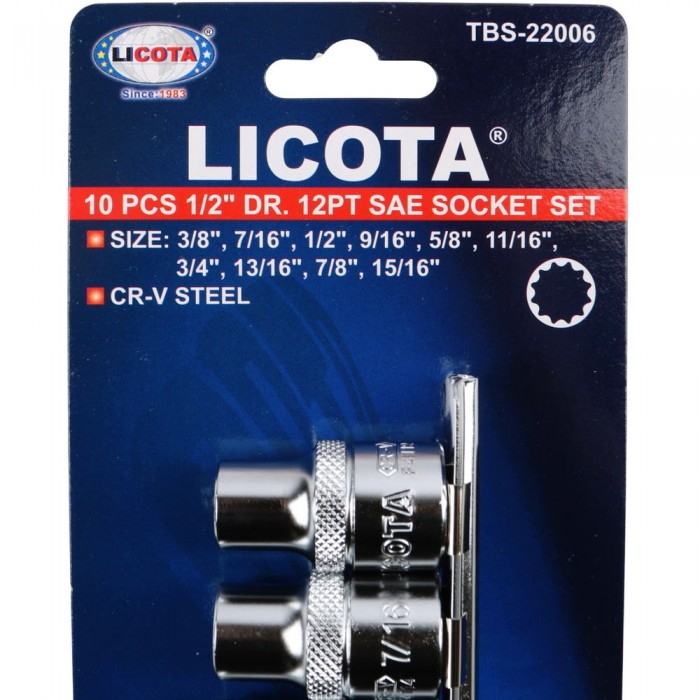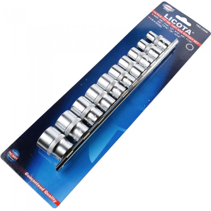Набор торцевых головок 12-ти гранных 10 пр. на линейке, 3/8"-15/16" 1/2" Licota TBS-22006