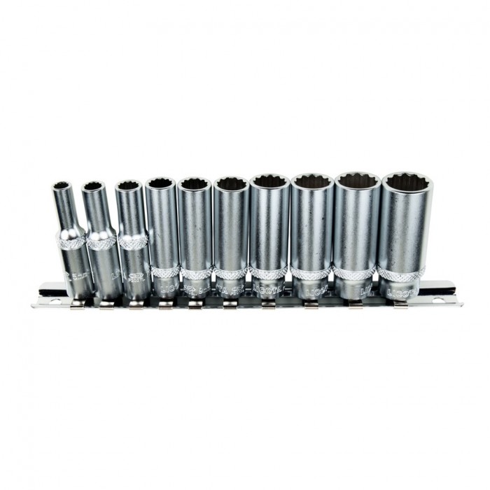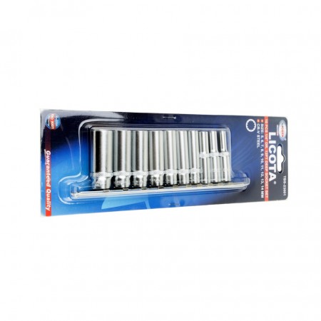 Набор глубоких торцевых головок Licota TBS-23001 из хром-ванадиевой стали предназначен для ручного монтажа/демонтажа резьбового крепежа. Набор из 10 предметов на металлическом держателе-линейке.