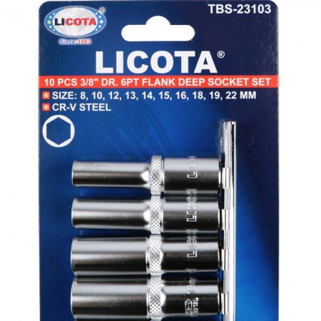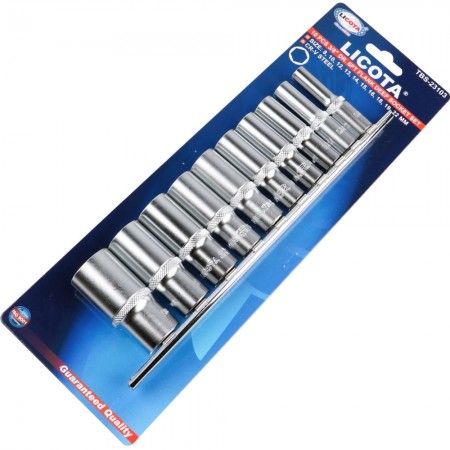 Набор глубоких торцевых головок 6-ти гранных 10 пр. на линейке, 8-22 мм 3/8" Licota TBS-23103