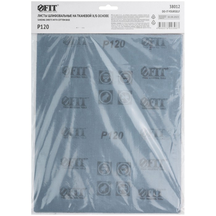 Листы шлифовальные на тканевой основе, алюминий-оксидный абразивный слой 230х280 мм, 10 шт. Р 120 (38012)