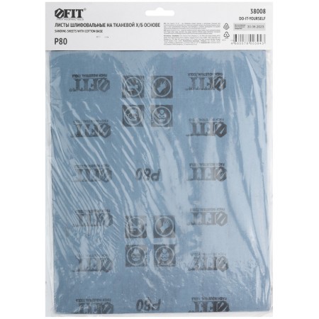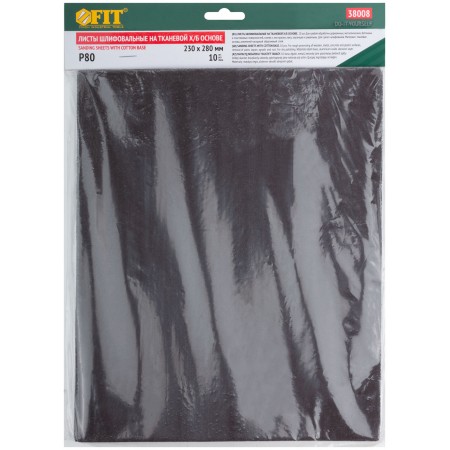 Листы шлифовальные на тканевой основе, алюминий-оксидный абразивный слой 230х280 мм, 10 шт. Р 80 (38008)