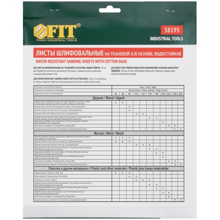 Профи. Для камня, дерева и металла, 230х280 мм, набор 10 листов. На тканевой основе. Водостойкая. Материал: алюминий-оксидный абразивный слой. Упаковка: картонный конверт.