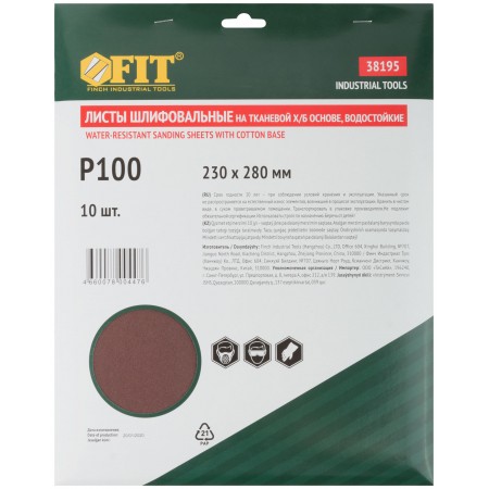 Листы шлифовальные водостойкие на тканевой основе, алюминий-оксидные, Профи 230х280 мм, 10 шт. Р 100 (38195)