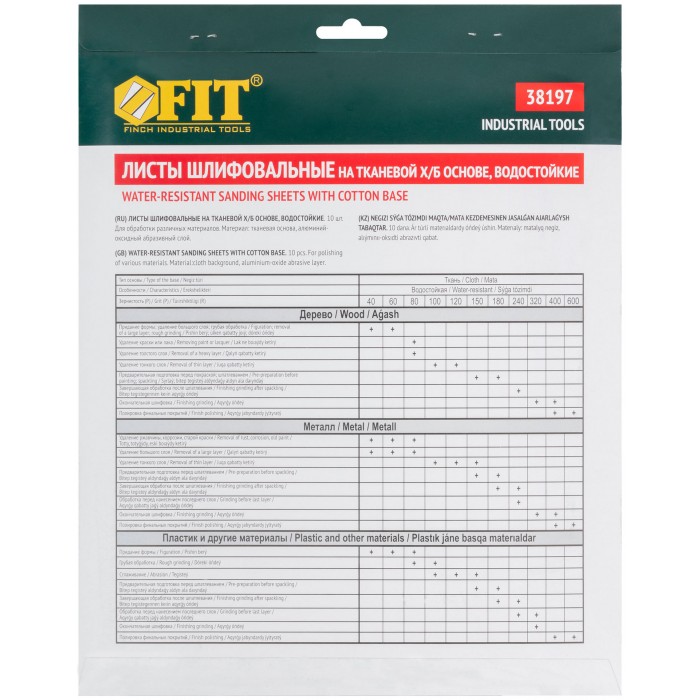 Профи. Для камня, дерева и металла, 230х280 мм, набор 10 листов. На тканевой основе. Водостойкая. Материал: алюминий-оксидный абразивный слой. Упаковка: картонный конверт.