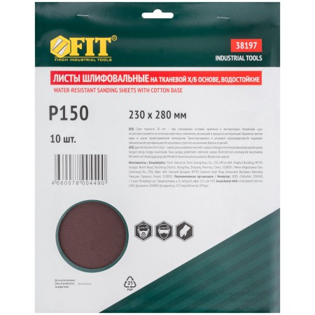 Листы шлифовальные водостойкие на тканевой основе, алюминий-оксидные, Профи 230х280 мм, 10 шт. Р 150 (38197)