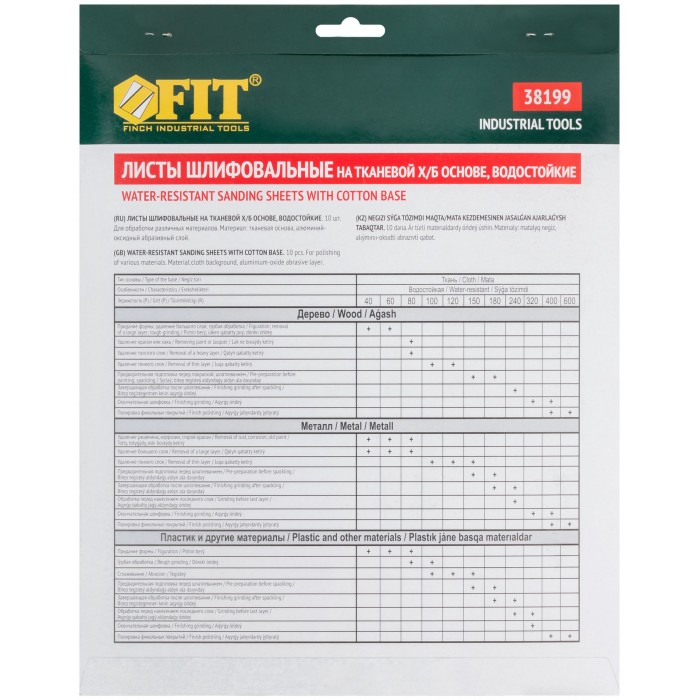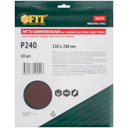 Листы шлифовальные водостойкие на тканевой основе, алюминий-оксидные, Профи 230х280 мм, 10 шт. Р 240 (38199)