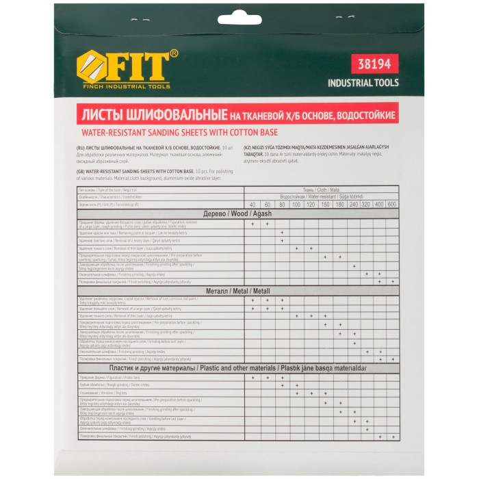 Профи. Для камня, дерева и металла, 230х280 мм, набор 10 листов. На тканевой основе. Водостойкая. Материал: алюминий-оксидный абразивный слой. Упаковка: картонный конверт.