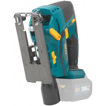 20 В; 0-2500 ход/мин; 20 мм; Д/М 80/6 мм; 45°; 1,6 кг; коробка. Быстрозажимной патрон, светодиодная подсветка рабочей зоны, маятниковый механизм, регулировка частоты хода, фиксатор режима включения, угол отклонения от оси 45°, подключение пылесоса, резиновые вставки.