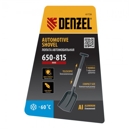 Лопата автомобильная, алюминиевая, 212х280х650-815 мм, телескопический черенок Denzel (61726)