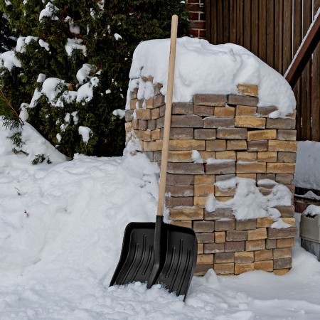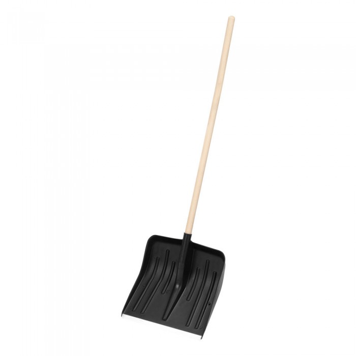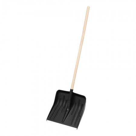 Лопата для уборки снега пластиковая, 420 х 425 х 1550 мм, деревянный черенок, Сибртех (61580)