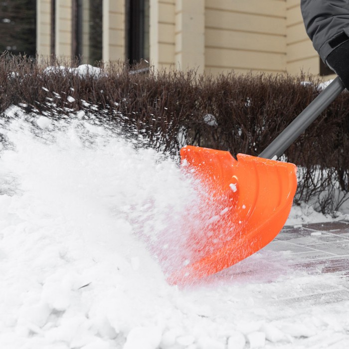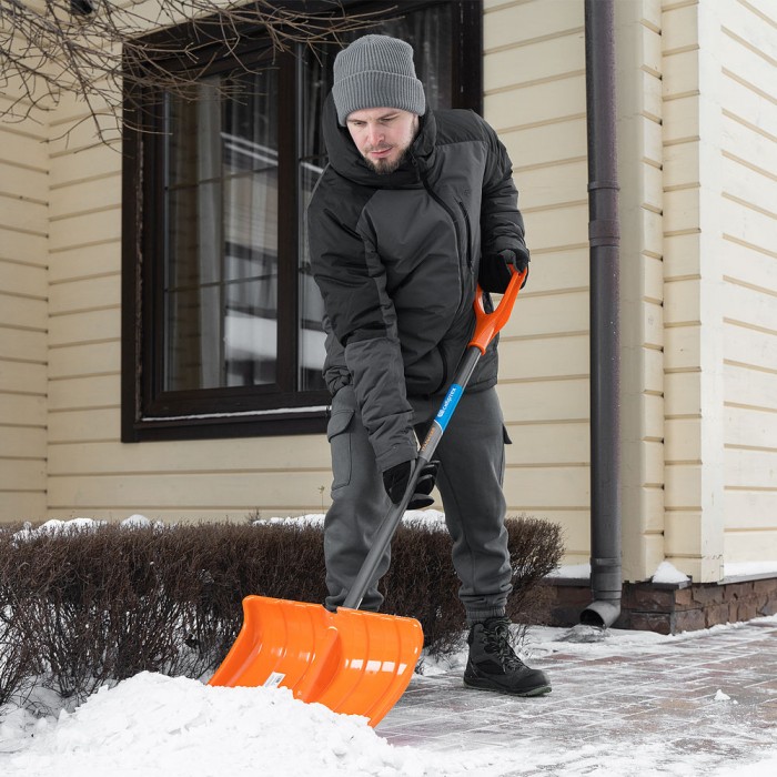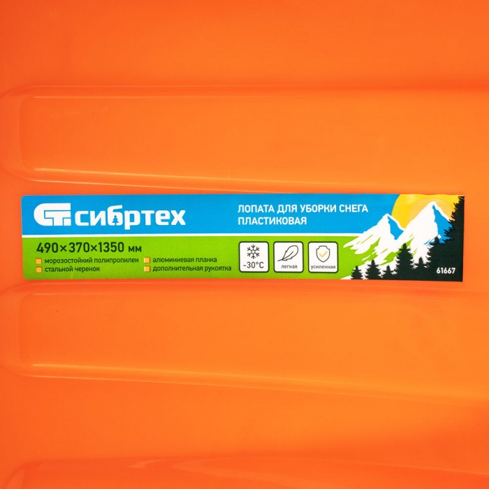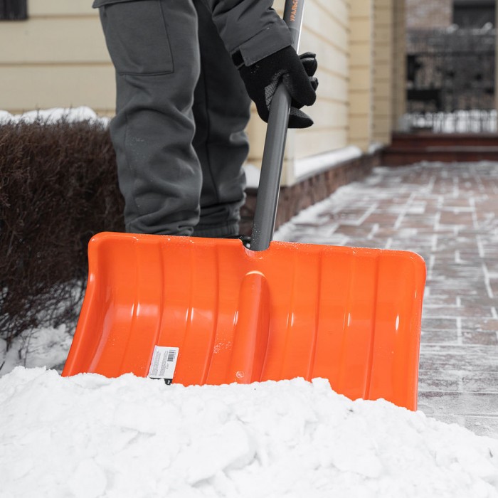 Лопата для уборки снега пластиковая, 490х370х1350 мм, стальной черенок, усиленная Сибртех (61667)