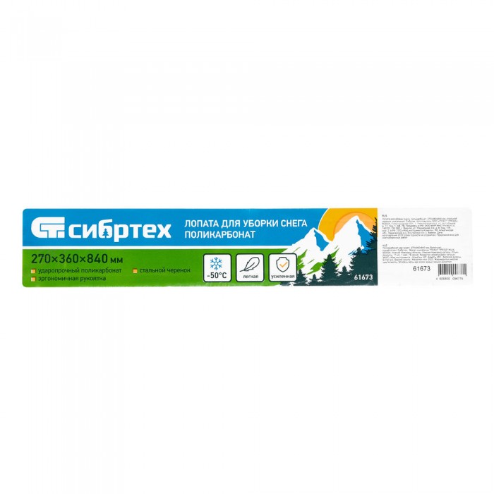 Лопата для уборки снега, поликарбонат, 270х360х840 мм, стальной черенок, усиленная Сибртех (61673)