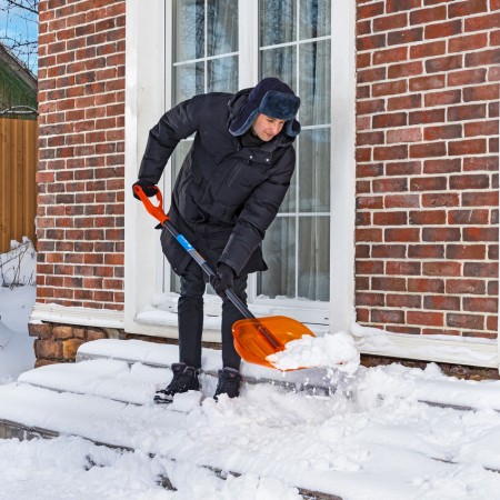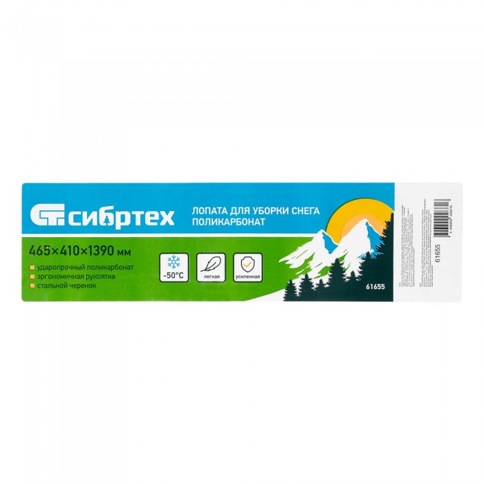 Лопата для уборки снега поликарбонат, 465х410х1390 мм, стальной черенок, усиленная Сибртех (61655)