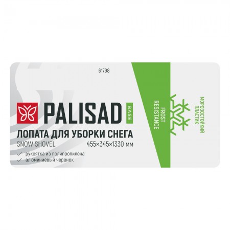 Лопата для уборки снега, полипропилен, 455х345х1330 мм, алюминиевый черенок, BASE Palisad (61798)