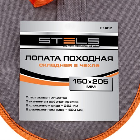 Лопата походная, 150х205х253 - 590 мм, пластик. рукоятка, складная в чехле, Stels (61462)