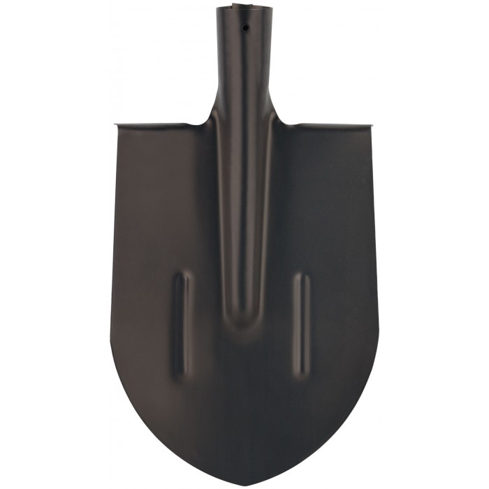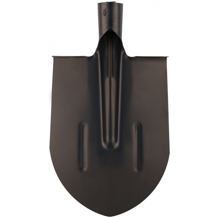Лопата штыковая, облегченная, с ребрами жесткости, без черенка. Посадочный диаметр 40 мм. Материал: инструментальная сталь.